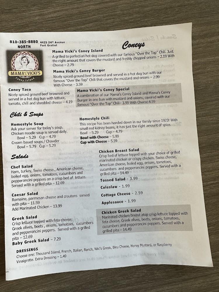 Welcome to Mama Vicki's Coney Island North, the heart of Fort Gratiot Township's dining scene! Located at 4425 24th Ave, we offer a cozy atmosphere perfect for families and groups alike. Enjoy our delicious American cuisine with a focus on traditional favorites, from hearty breakfasts to satisfying dinners. With options for takeout, dine-in, and delivery, your cravings are just a call away at +1 810-385-8880. Our menu features local specialties and delightful desserts, alongside a kid-friendly selection. Plus, our accessible facilities ensure everyone can join in the fun. Experience quick service and casual dining at Mama Vicki's—where every meal feels like home!